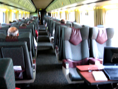 It was an early day today, I got up at 4:30 am, and my husband dropped me off at 5:45 am at Toronto’s historic Union Station. Several buses of young students were already unloading their luggage and ready to enter the train station. At about 6 am the Via Rail counters were opening up and since I had a first class ticket (called Via 1), I was directed to Via’s Panorama Lounge, a special section with comfortable armchairs, free newspapers and soft drinks. This was my first time on a Canadian train and I was very excited about experiencing train travel and not having to fight my way through traffic driving to Montreal.
