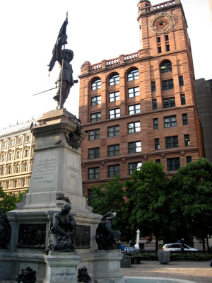 The Aldred Building is a fine example of Art Deco skyscraper architecture and for many years it was the highest building in Montreal. Louis quite appropriately referred to the stepped back skysraper design as the wedding cake architectural style. The centre of Place d’Armes is watched over by a statue of Paul de Chomedey, Sieur de Maissoneuve, who founded Montreal in 1642.